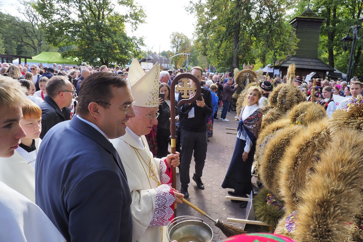 Ogólnopolskie dożynki w Spale rozpoczęła uroczysta, polowa msza święta przy kościele pw. Matki Bożej Królowej Korony Polskiej. Nabożeństwo prowadził biskup łowicki Andrzej Dziuba. Minister Stefan Krajewski w przemówieniu podkreślił, iż dożynki „to święto nie tylko rolników, ale całej Polski – wszystkich, którzy codziennie korzystają z owoców pracy ludzi związanych z ziemią”. Elementem obchodów była uroczysta prezentacja wieńców dożynkowych – symboli urodzaju, płodności i dostatku. Po mszy świętej, dziękczynnej za plony, za zdrowie i pomyślność wszystkich ludzi pracujących na wsi i związanych z rolnictwem, ogrodnictwem i pszczelarstwem ruszył ku scenie barwny korowód wieńców dożynkowych. Województwo łódzkie reprezentował wieniec wykonany przez KGW Kogiel Mogiel w Rajsku Małym z gminy Rozprza (powiat piotrkowski), który wygrał konkurs podczas tegorocznych Dożynek Wojewódzkich w Buczku.