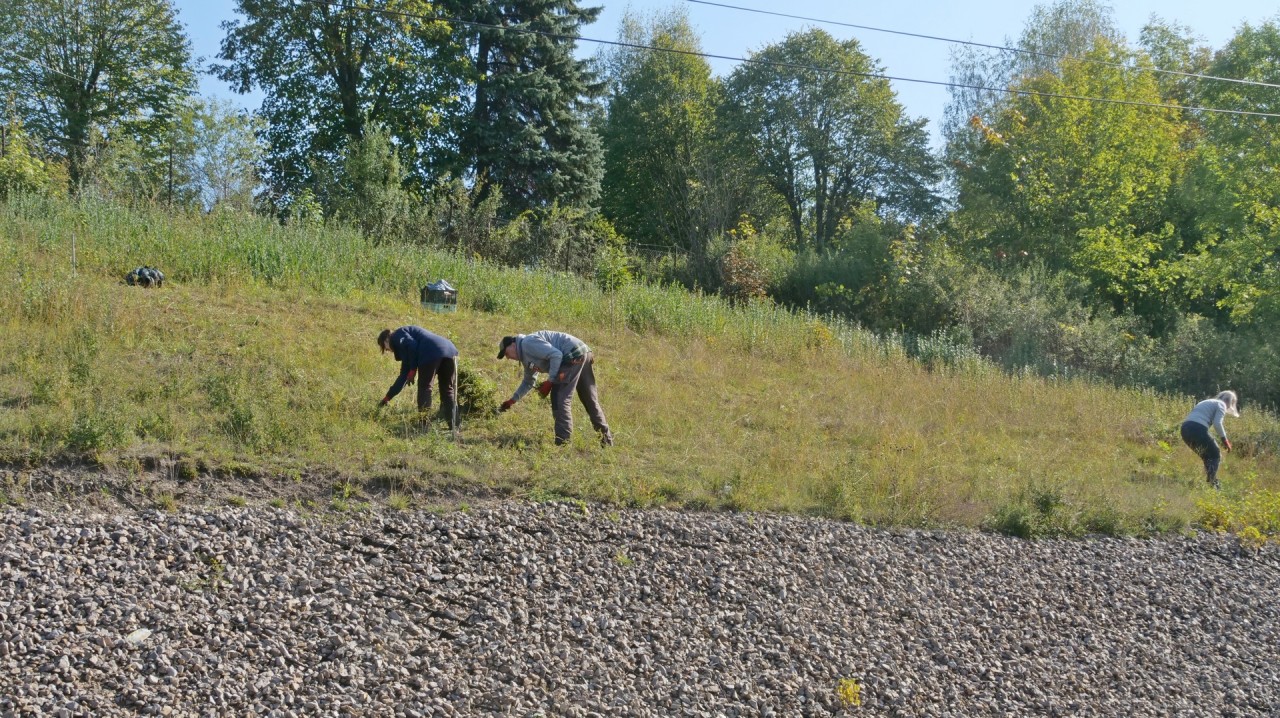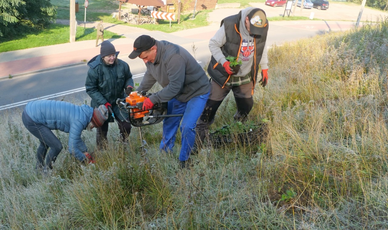 Na powierzchni murawy w ruch poszły narzędzia; sekatory, maczety, szpadle, przy pomocy których została oczyszczona powierzchnia gruntu z niepotrzebnych (ekspansywnych) roślin, a następnie po nawierceniu świdrem otworów w kamienistym podłożu, była sadzona rozsada zawilca wielkokwiatowego.