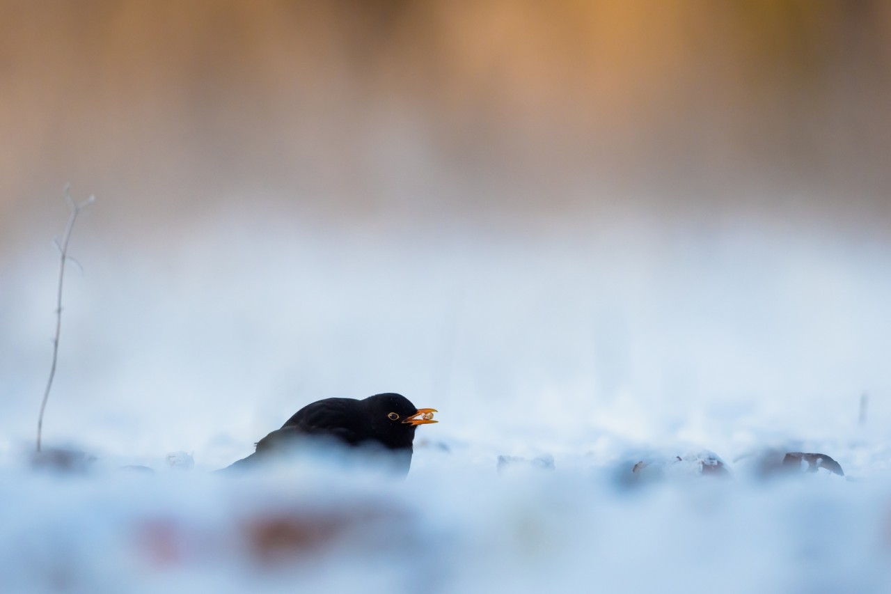 - W lesie, pośród ośnieżonych sosen, można dostrzec majestatyczną sylwetkę łosia, a na białym tle śniegu zastygłe w bezruchu kosy, kwiczoły oraz czerwieniące się jak dojrzałe owoce gile.