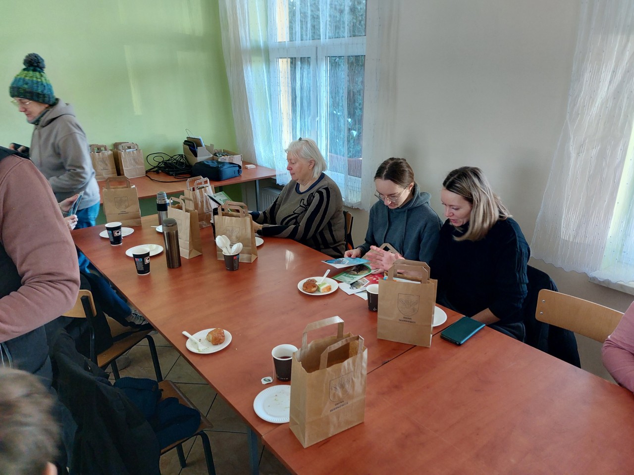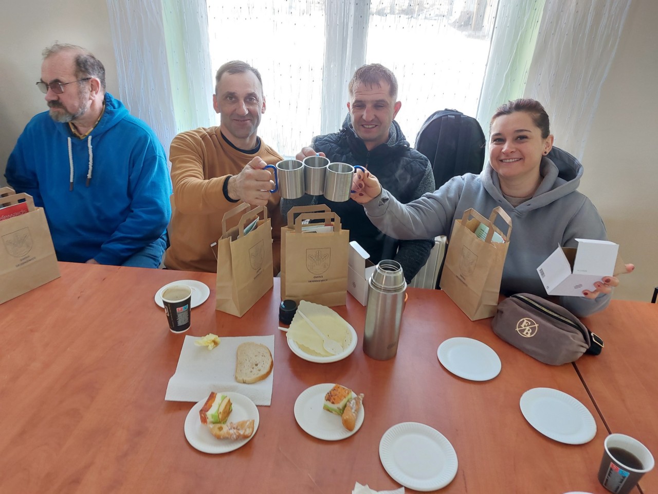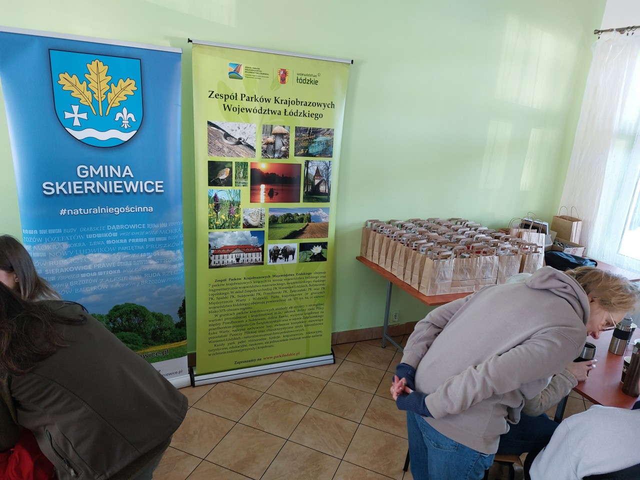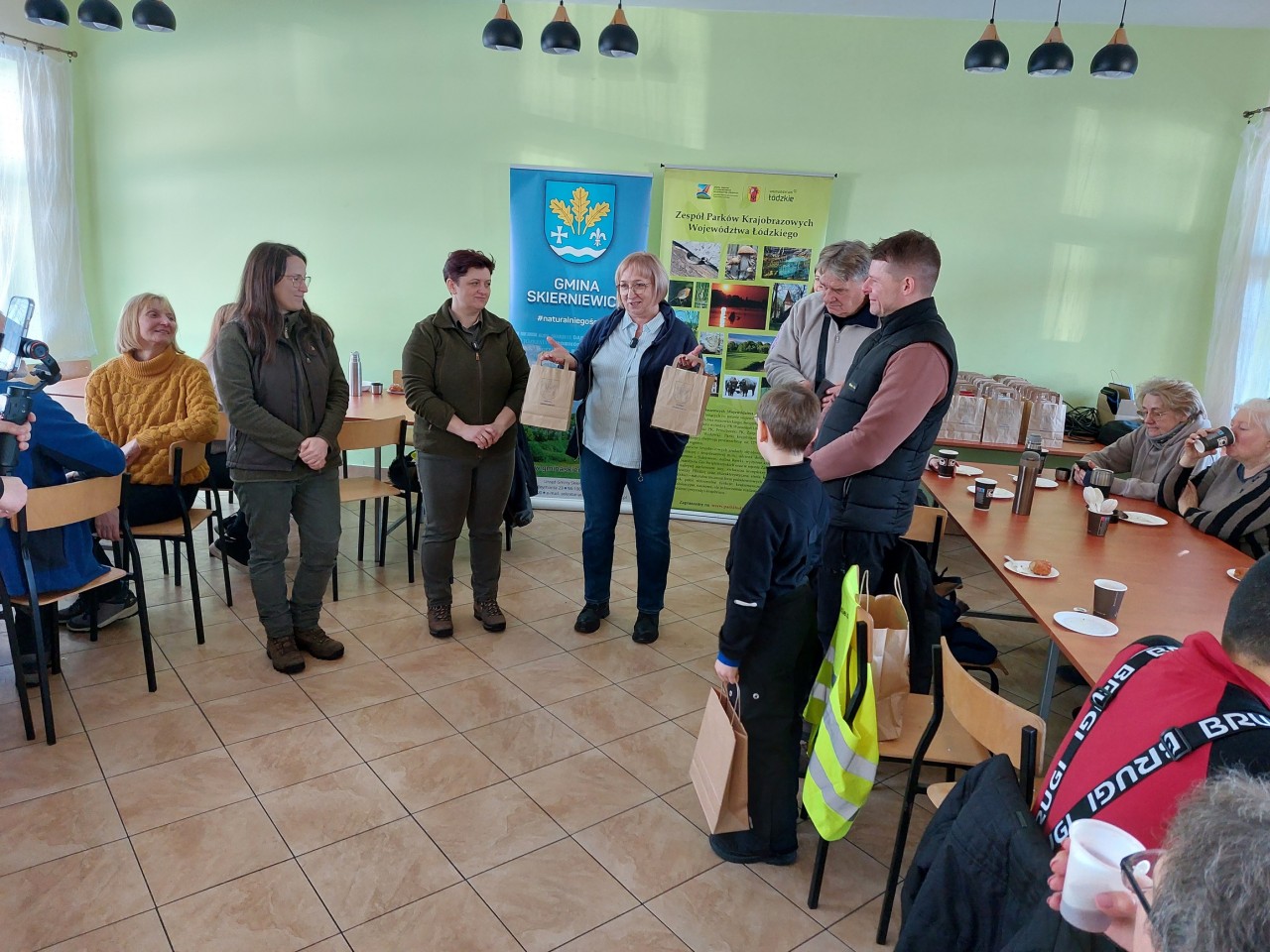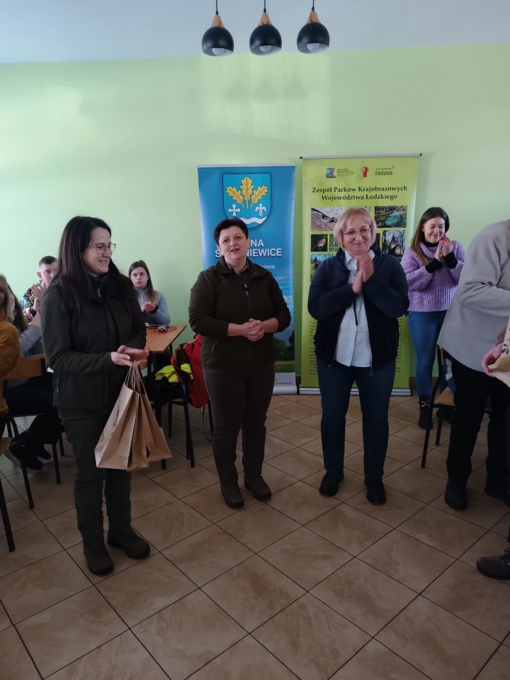 Po powrocie do OSP, Pani Wójt Gminy Skierniewice – Lucja Skarzyńska przywitała uczestników spaceru oraz zaprosiła na ciepły posiłek przygotowany przez Stowarzyszenie Koła Kobiet Wiejskich w Miedniewicach oraz ognisko, nad którym czuwała Ochotnicza Straż Pożarna w Borowinach. Wręczono także drobne upominki uczestnikom ufundowane przez Gminę Skierniewice i Zespół Parków Krajobrazowych Województwa Łódzkiego. W całym spacerze towarzyszyły nam lokalne media - Twoja Strona Miasta.