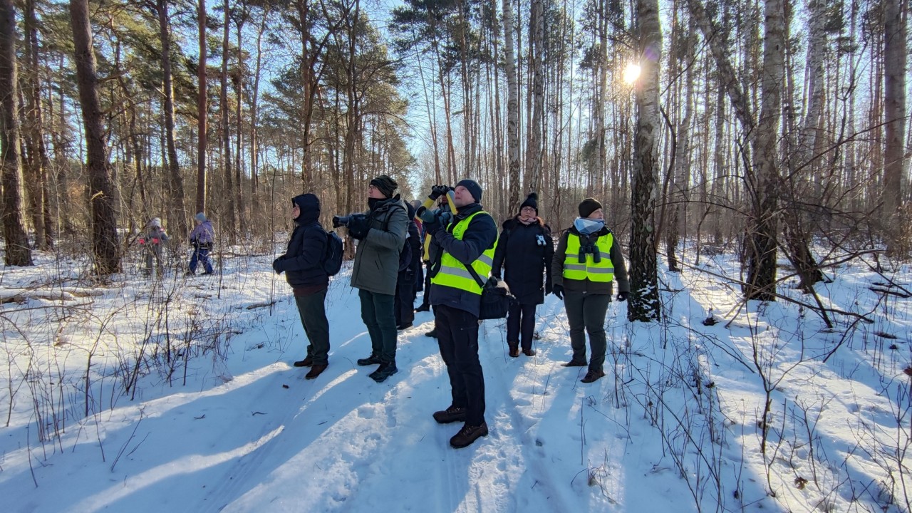 1 lutego 2026, mimo dużego mrozu, grupa około 40 spragnionych ornitologicznej wiedzy i przyrodniczych odkryć śmiałków uczestniczyła w naszym wydarzeniu edukacyjnym „Gdzie ptaki zimują”.