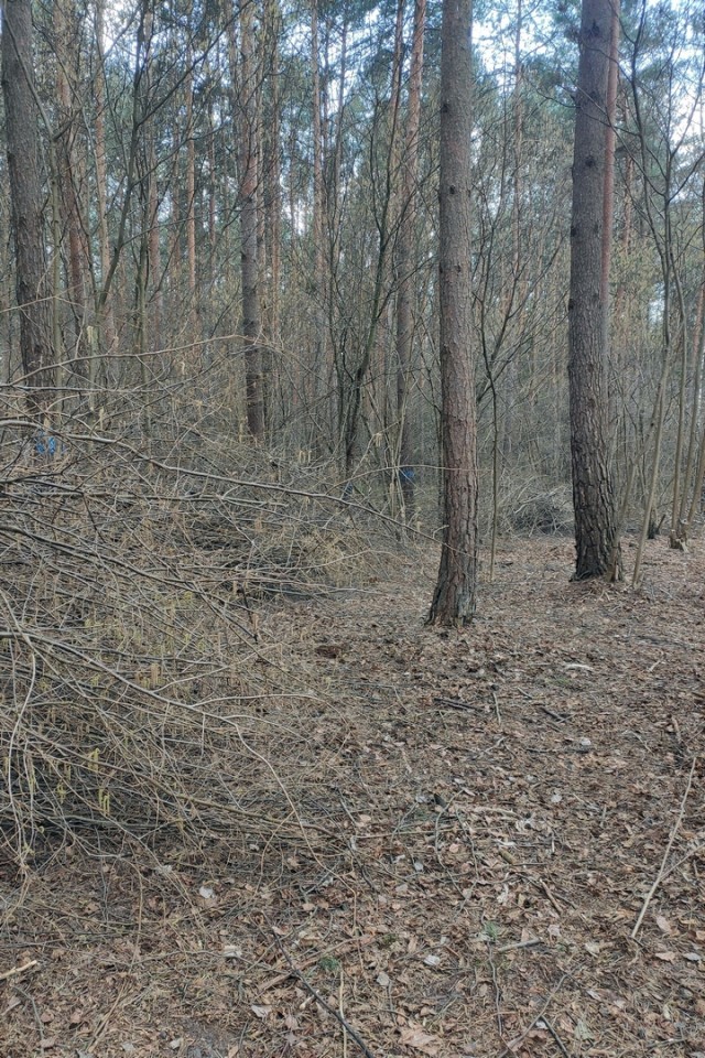 - Zachowaniu wartościowej domieszki gatunkowej w postaci głogu, lipy oraz krzewów porzeczek (pozostawiono również pojedyncze pędy leszczyny z kęp).