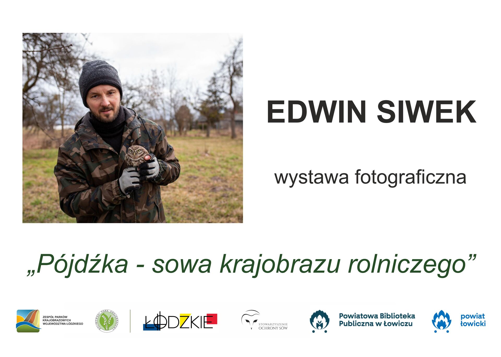 Zespół Parków Krajobrazowych Województwa Łódzkiego Oddział Bolimowskiego Parku Krajobrazowego oraz Powiatowa Biblioteka Publiczna im. ks. prał. Stefana Wysockiego w Łowiczu zapraszają do odwiedzenia wystawy fotograficznej „Pójdźka – sowa krajobrazu rolniczego”, której autorem jest Edwin Siwek – członek Stowarzyszenia Ochrony Sów. Od kilku lat bardzo aktywnie zajmuje się ochroną czynną pójdźki i płomykówki w województwie mazowieckim i łódzkim.