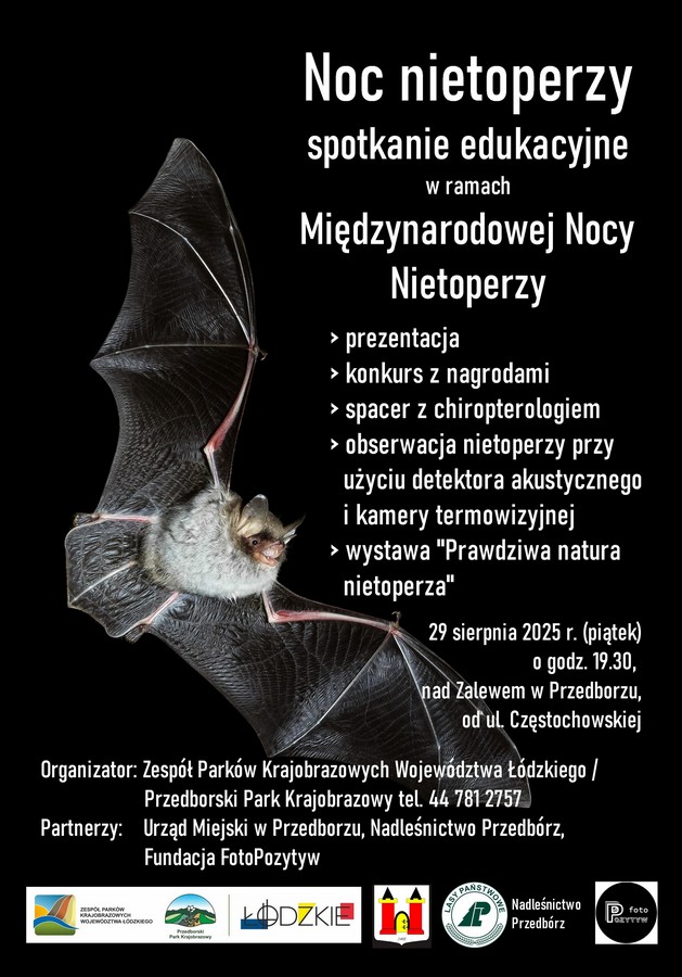 Zespół Parków Krajobrazowych Województwa Łódzkiego – Oddział Nadpilicznych Parków Krajobrazowych zaprasza na wydarzenie „Noc Nietoperzy” w Spalskim Parku Krajobrazowym! Podczas spotkania pasjonaci przyrody będą mieli okazję poszerzyć swoją wiedzę o tych tajemniczych i fascynujących zwierzętach. W ramach wydarzenia pracownicy Parku będą prowadzić odłowy nietoperzy przy pomocy specjalistycznych sieci, w celu lepszego poznania ich występowania na terenie Spalskiego Parku Krajobrazowego.