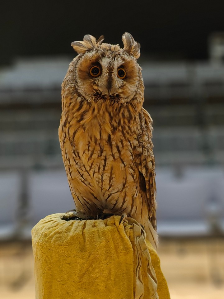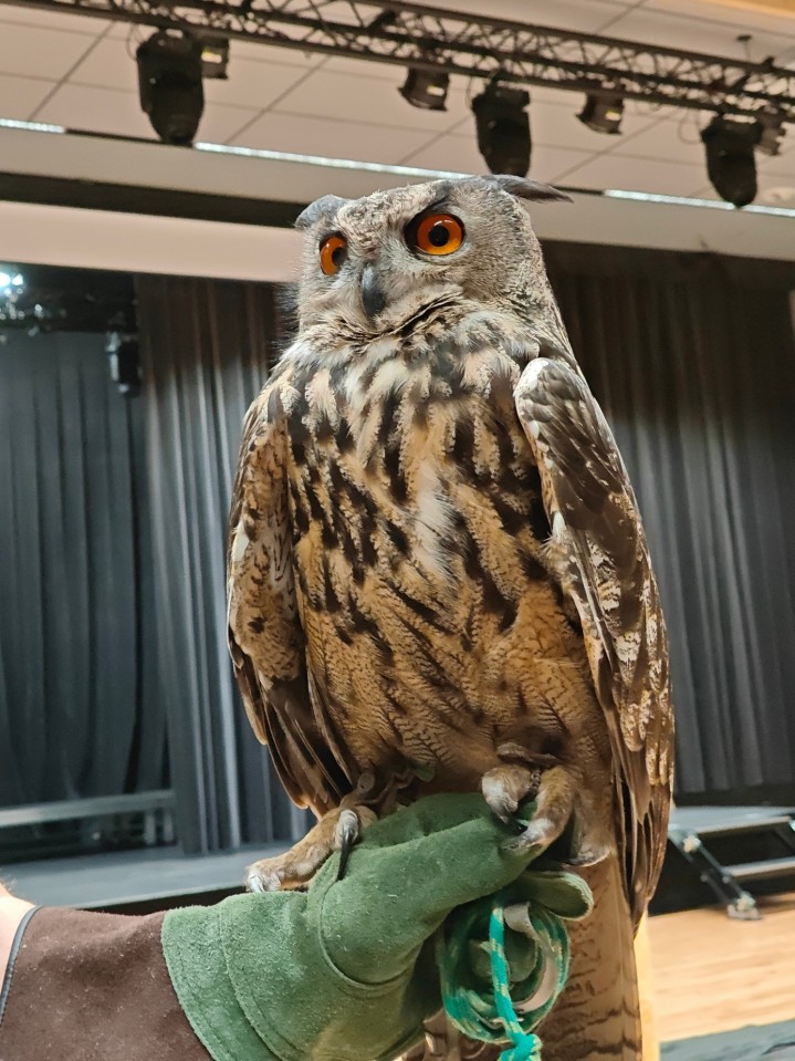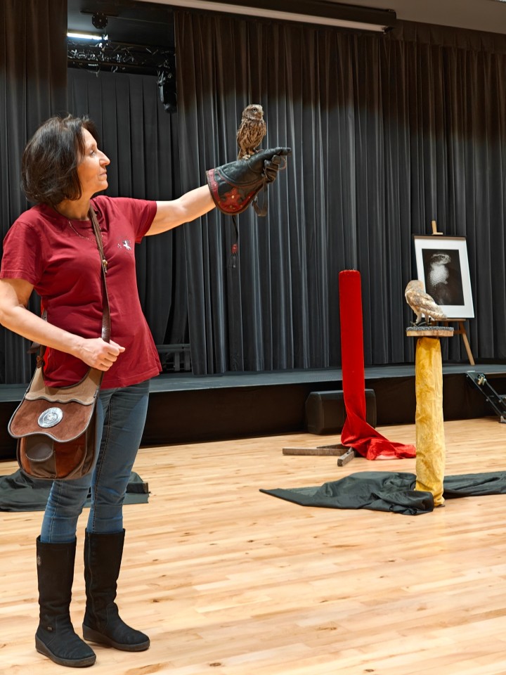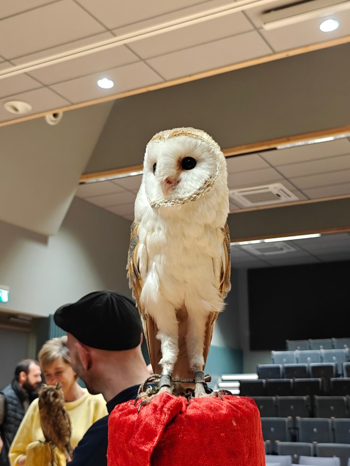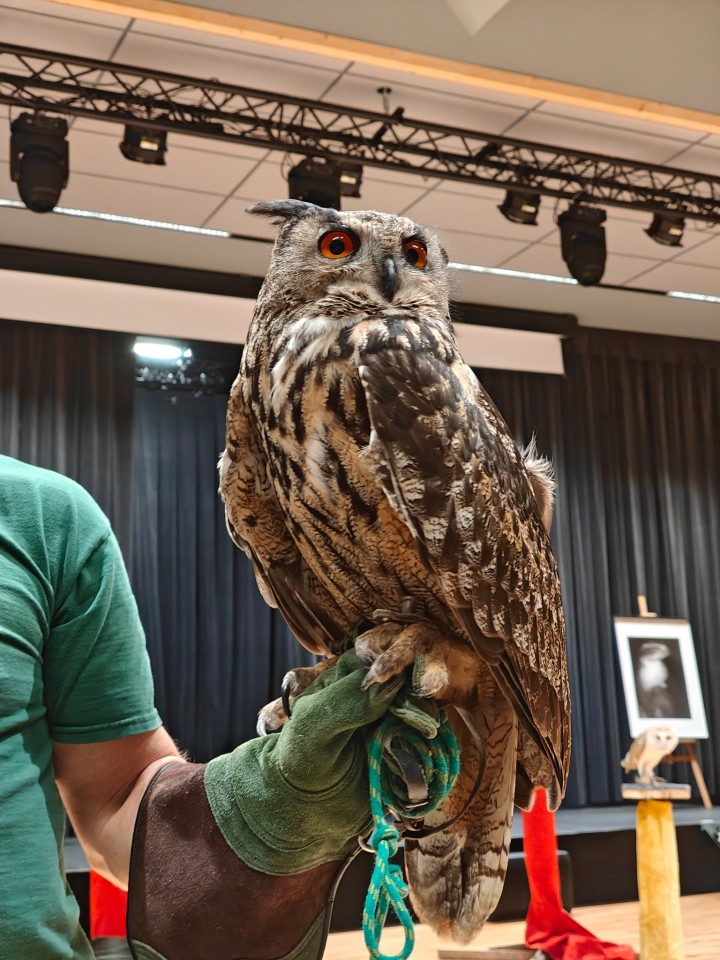 To wyjątkowe spotkanie było prowadzone przez Panią Ewę i Pana Roberta Puławskich z grupy sokolniczej „Rabiec”. Uczestnicy mieli możliwość wysłuchania informacji dotyczących budowy, trybu życia, lęgów, różnic gatunkowych sów oraz metod ich ochrony. Największe wrażenie zrobiła możliwość zobaczenia na żywo tych pięknych i tajemniczych ptaków. Sokolnicy prezentowali sowy pochodzące z hodowli, posiadające odpowiednie dokumenty, zgody i certyfikaty. Zgromadzeni mogli podziwiać płomykówkę, pójdźkę, uszatkę, puszczyka i okazałego puchacza. Wyświetlony został także krótki film z sowami w roli głównej. Blisko 150 osób z różnych części naszego województwa z wielkim zainteresowaniem uczestniczyło w tym wydarzeniu, co napawa nas ogromną radością i utwierdza w przekonaniu, że tego typu forma edukacji przyrodniczej jest bardzo dobrze odbierana.